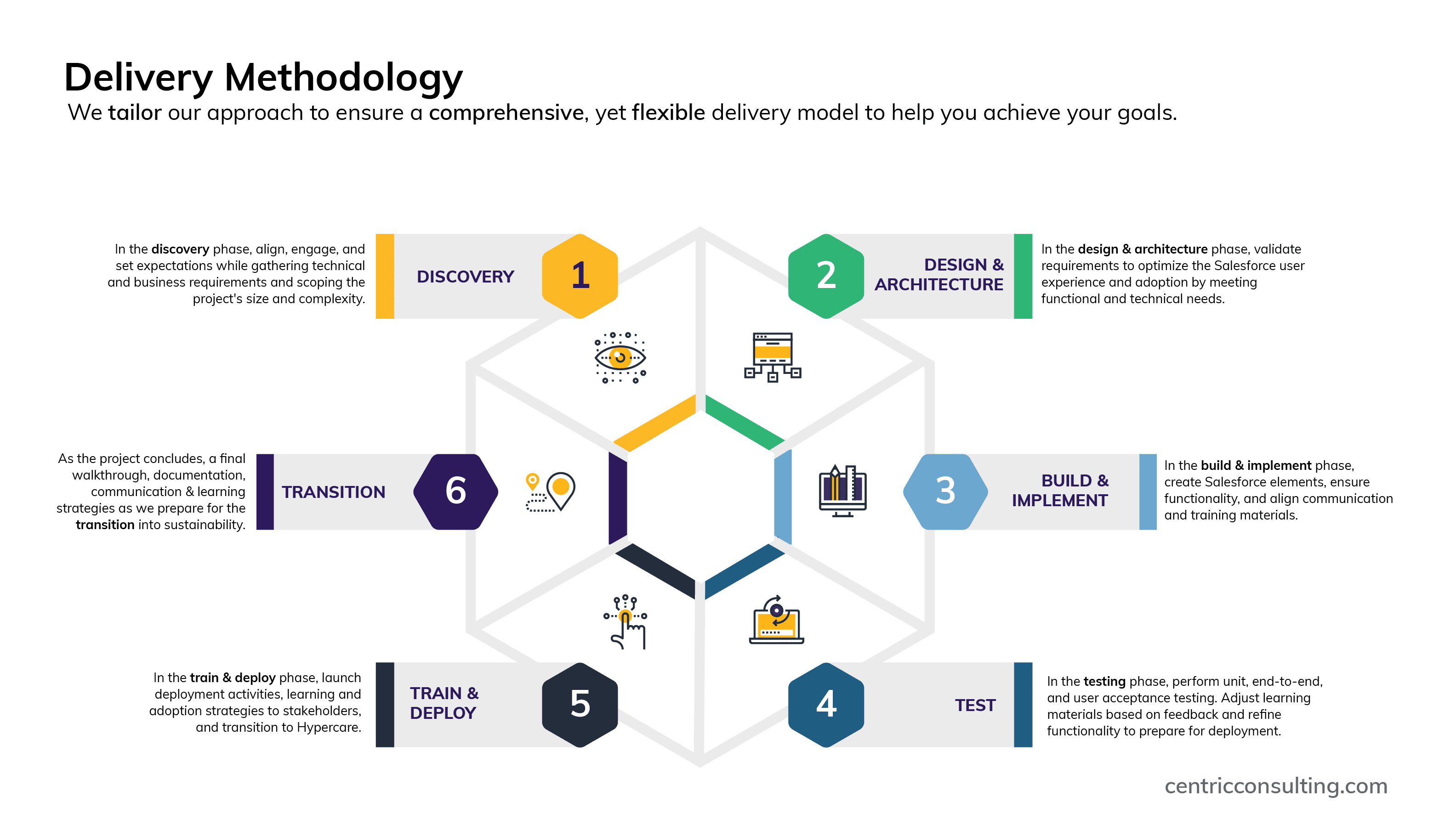 Salesforce implementation works through a combination of planning and road mapping, establishing ownership and clear lines of responsibility, and aligning stakeholder expectations so your company gets the results you need to be successful